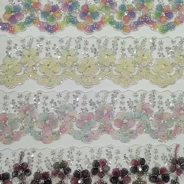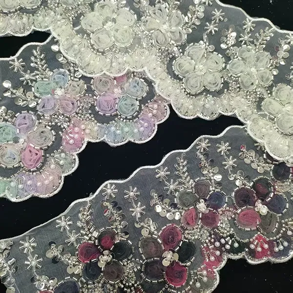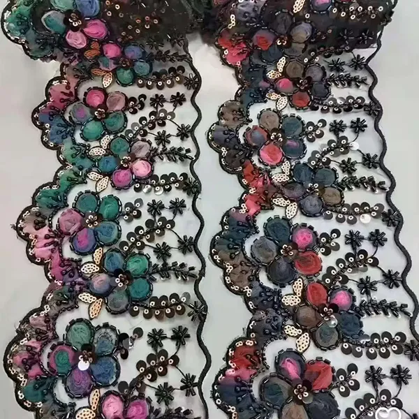 Çoxrəngli Naxışlı Krujeva 3D Mesh Çiçəkli Lent Muncuqlu Boru Barkod Naxışlı Krujeva