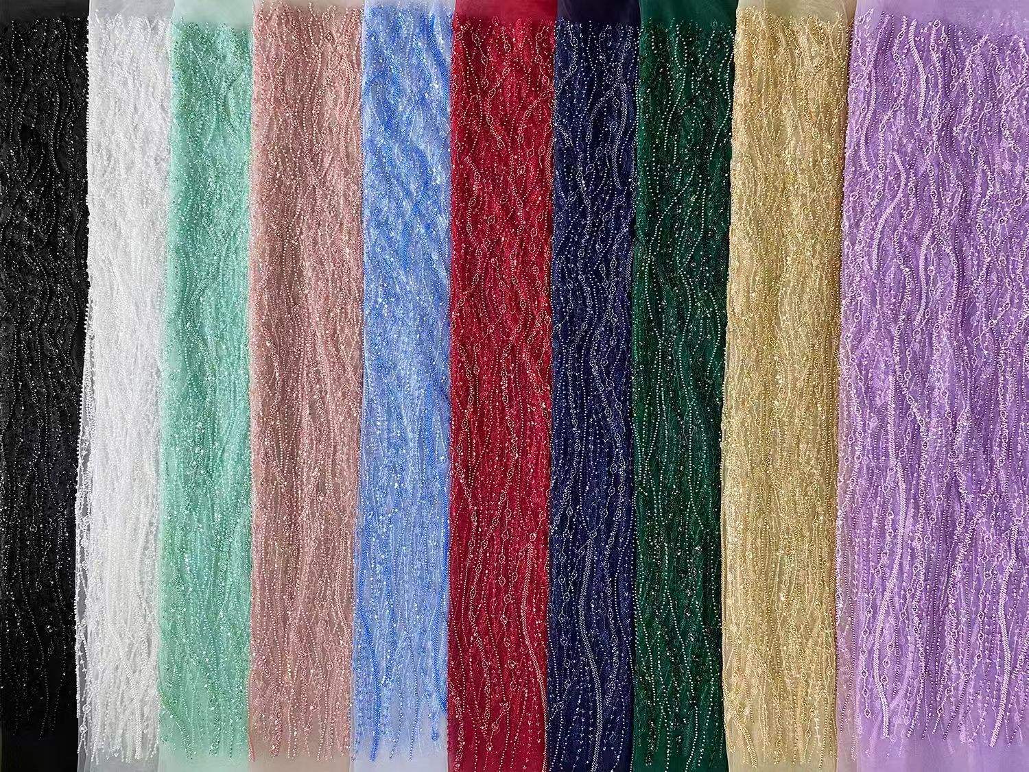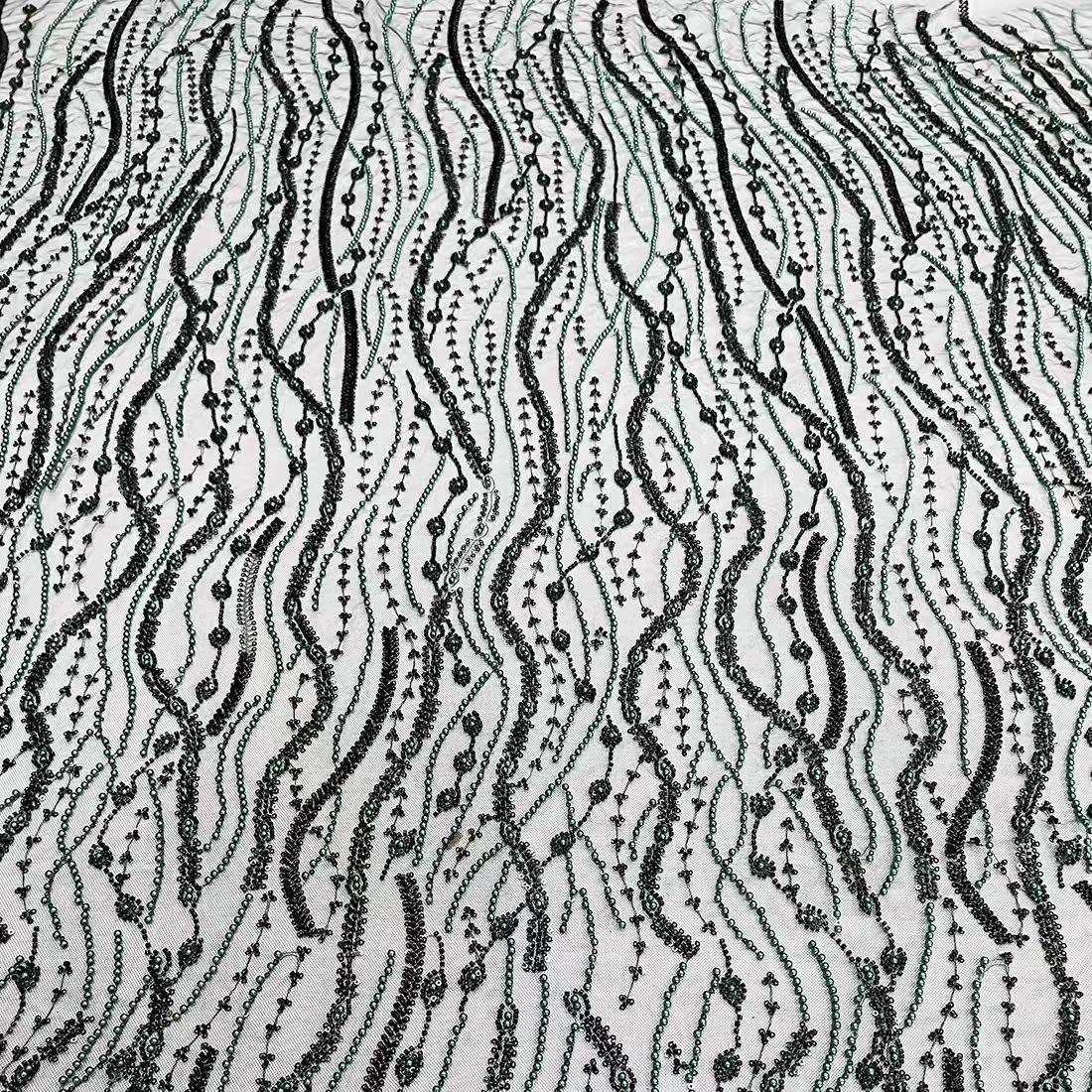 Yeni Mesh Nakış Boncu Boru Boru Nakış Afrika parça krujeva, üçölçülü muncuq boru tikilmiş yenilikçi mesh bazası, güclü bir Afrika etnik ləzzətini əhatə edir. Haute Couture, səhnə geyimləri və mədəni və yaradıcı geyim üçün uyğundur, lüks və ekzotik toxumanın vurğulayan xüsusi naxışlar və rəng birləşmələrini dəstəkləyir.